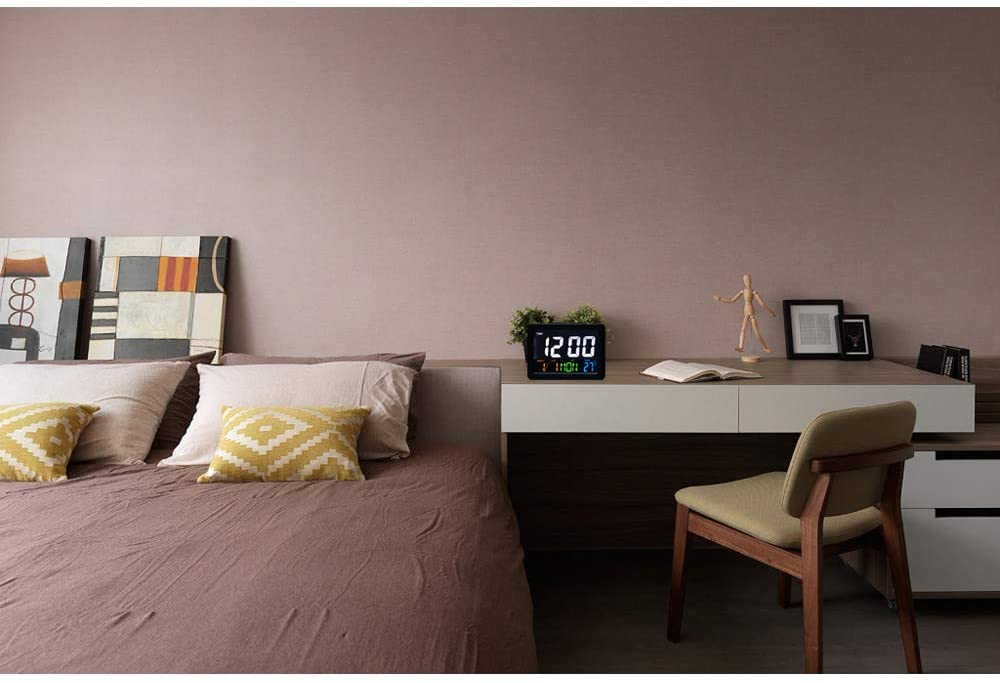 ساعة مكتب رقمية LED - ساعة منبه LED بشاشة كبيرة بجانب السرير مع التاريخ ودرجة الحرارة
