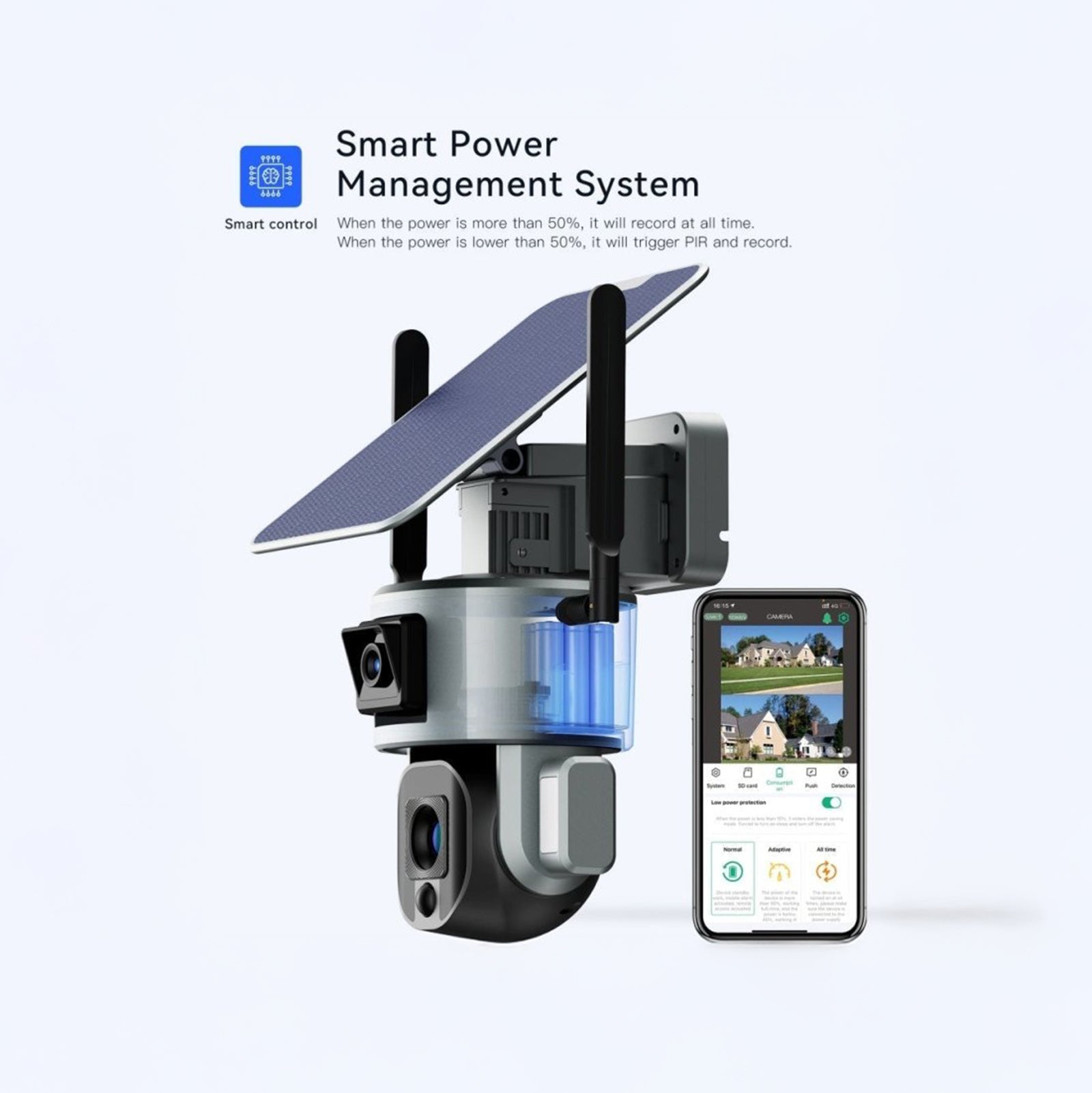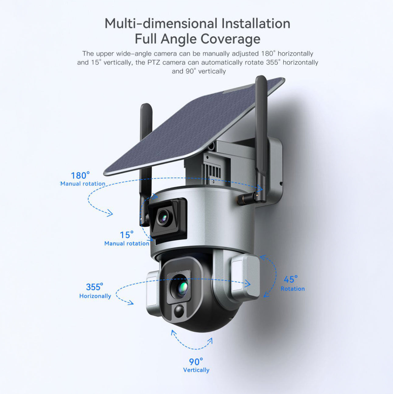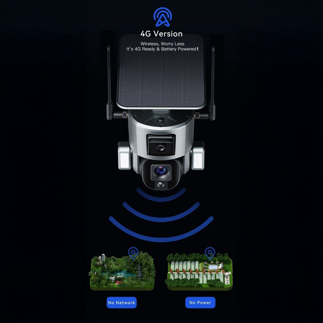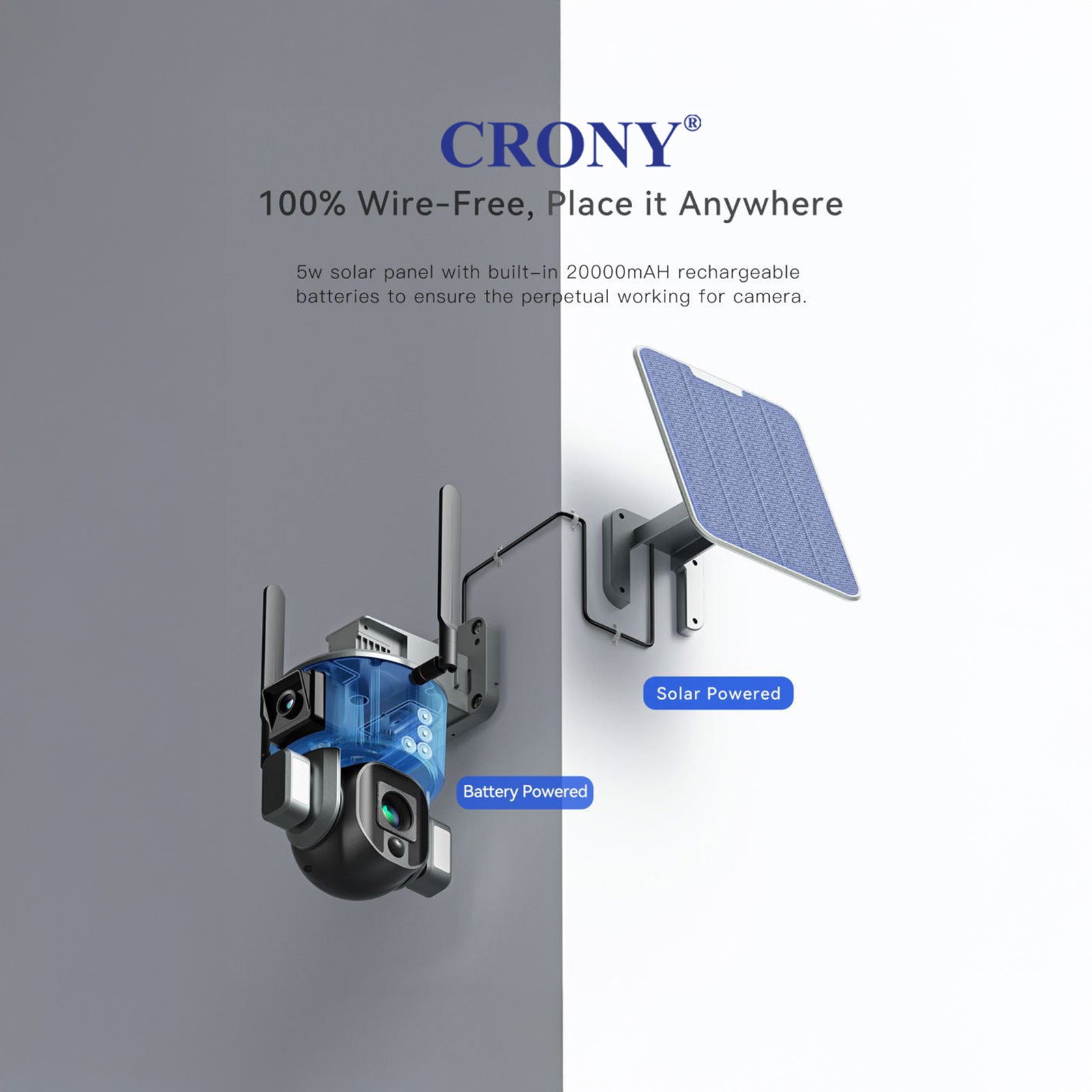 كاميرا CRONY D5 4G-4K-8MP بالطاقة الشمسية مزدوجة الربط مع بطارية PTZ 8MP كاميرا مراقبة لاسلكية 8MP خارجية مقاومة للماء IP66 كاميرا شمسية مزدوجة