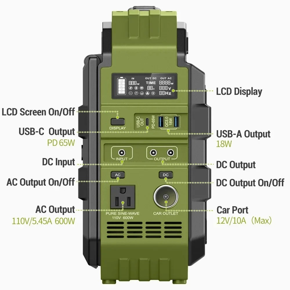 الاستخدامات الموصى بها للمنتج: مولد محمول للتخييم في الهواء الطلق؛ بنك طاقة محمول للابتوب، السكني، السفر بسيارة RV، التخييم