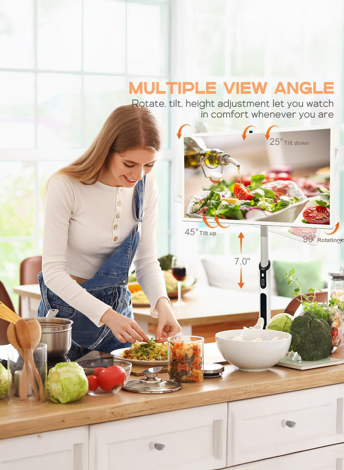 شاشة محمولة CRONY TX32-1 بحجم 32 بوصة مع عجلات، شاشة محمولة تعمل باللمس بدقة 1080p IPS HD، بطارية مدمجة/مكبرات صوت/دعم البلوتوث/اتصال USB-C وHDMI/دوران ذكي مع حامل قابل للإزالة