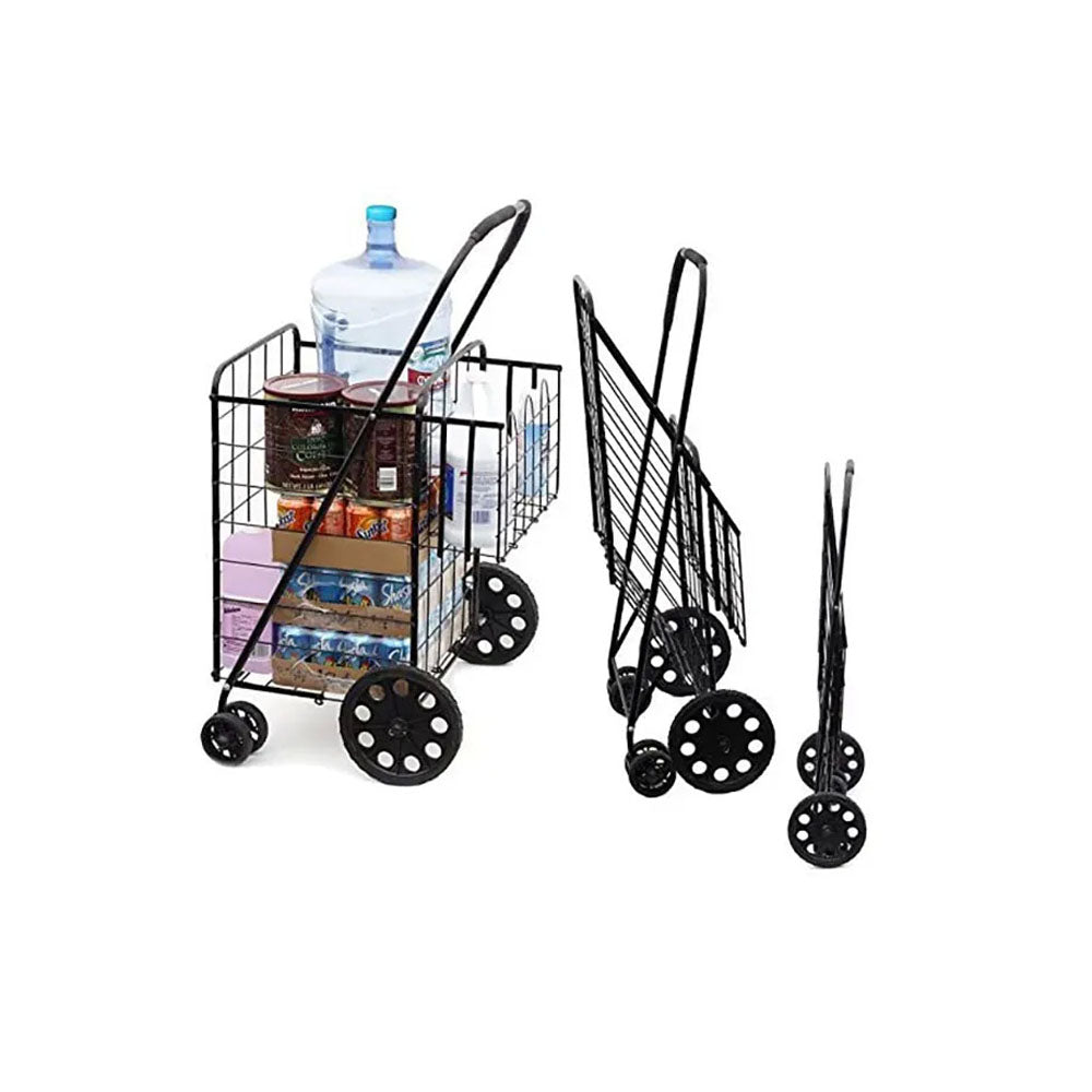 عربة تسوق كبيرة بسلتين مزدوجتين CRONY قابلة للطي بعجلات، عربة أمتعة مدمجة محمولة، عربة تسوق معدنية قابلة للطي للسوبرماركت