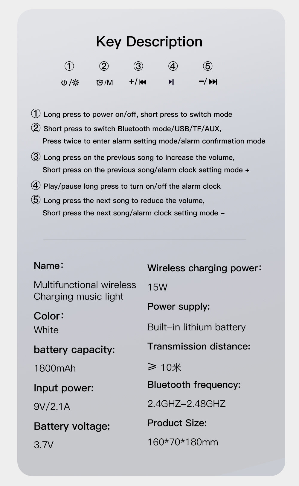 الاسم: ضوء موسيقي متعدد الوظائف مع شحن لاسلكي