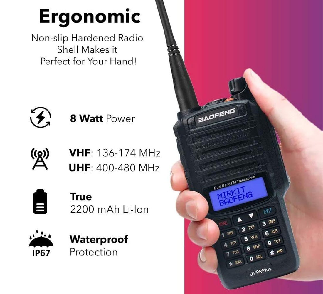 جهاز اتصال لاسلكي محمول يدوي باوفينغ 10 واط UV-9R مدى 8-15 كم راديو محمول IP67 مقاوم للغبار والبرد والماء