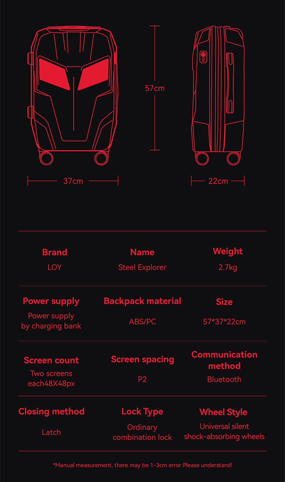 CRONY حقيبة ظهر استكشافية من ألياف الكربون مع شاشة LED حقيبة عربة بإضاءة صندوق إعلانات بنمط مخصص