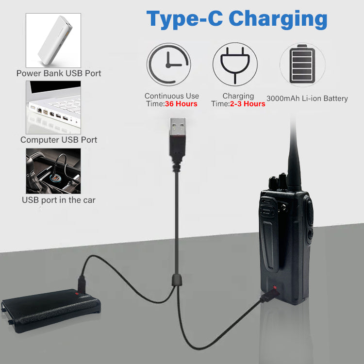 كروني 5W CY-810 TPYE-C جهاز اتصال لاسلكي محمول يدوي مدني ثنائي الاتجاه 3-5 كم أسود جهاز اتصال لاسلكي محمول