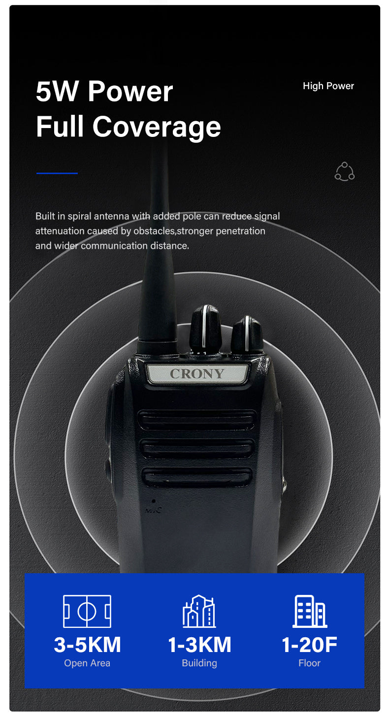 Crony 5W CY-810 أجهزة اللاسلكي المهنية، أفضل جهاز لاسلكي محمول يدوي مدني ثنائي الاتجاه باللون الأسود