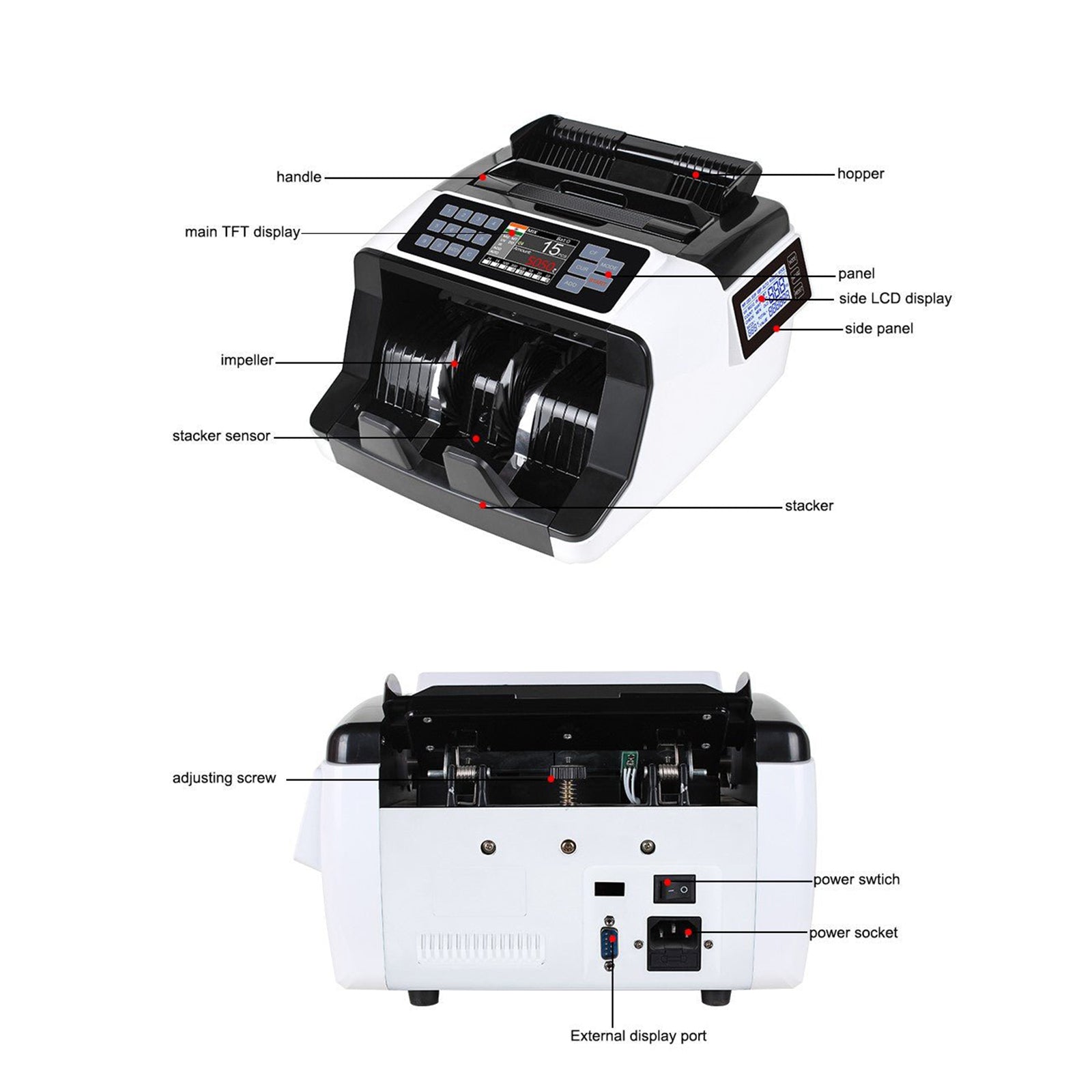 الرقم على اليسار يختار المبلغ المحدد مسبقًا. الفرق عن عداد النقود من موديل 6000 هو بشكل رئيسي المظهر والشاشة. الجمع اليدوي يحتوي على المزيد من الكشف المغناطيسي.