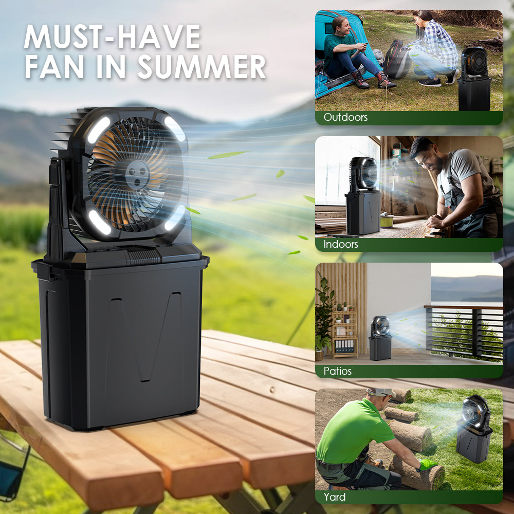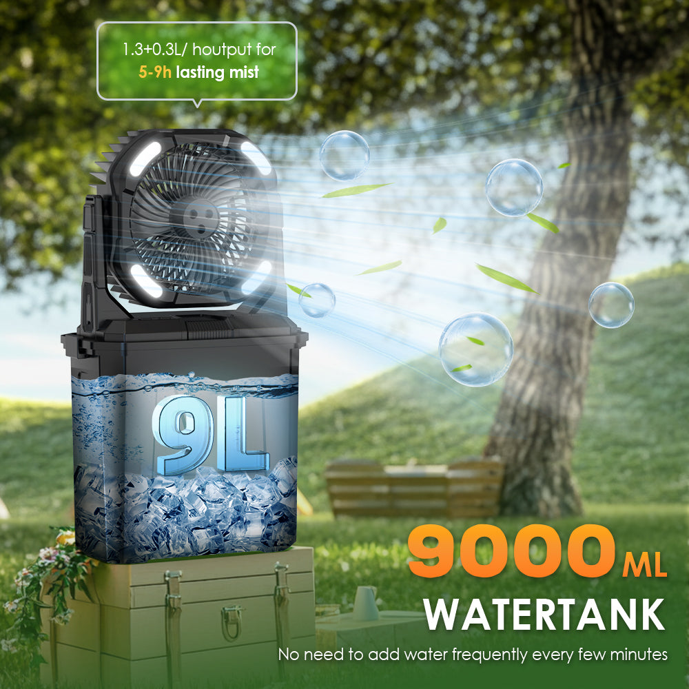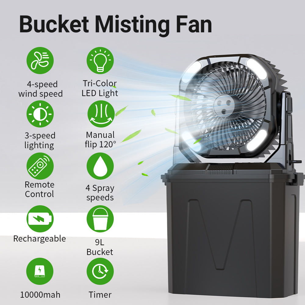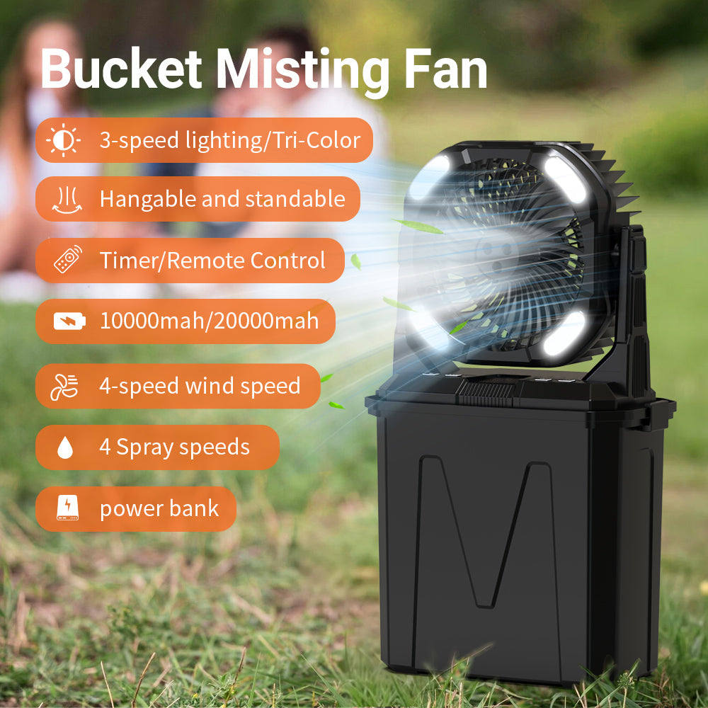 مروحة رش دلو CRONY F913 مروحة رذاذ قابلة لإعادة الشحن مع بطارية 20000mAh ضوء RGB مخرج USB مروحة محمولة للتخييم في الهواء الطلق السفر الاستخدام الطارئ