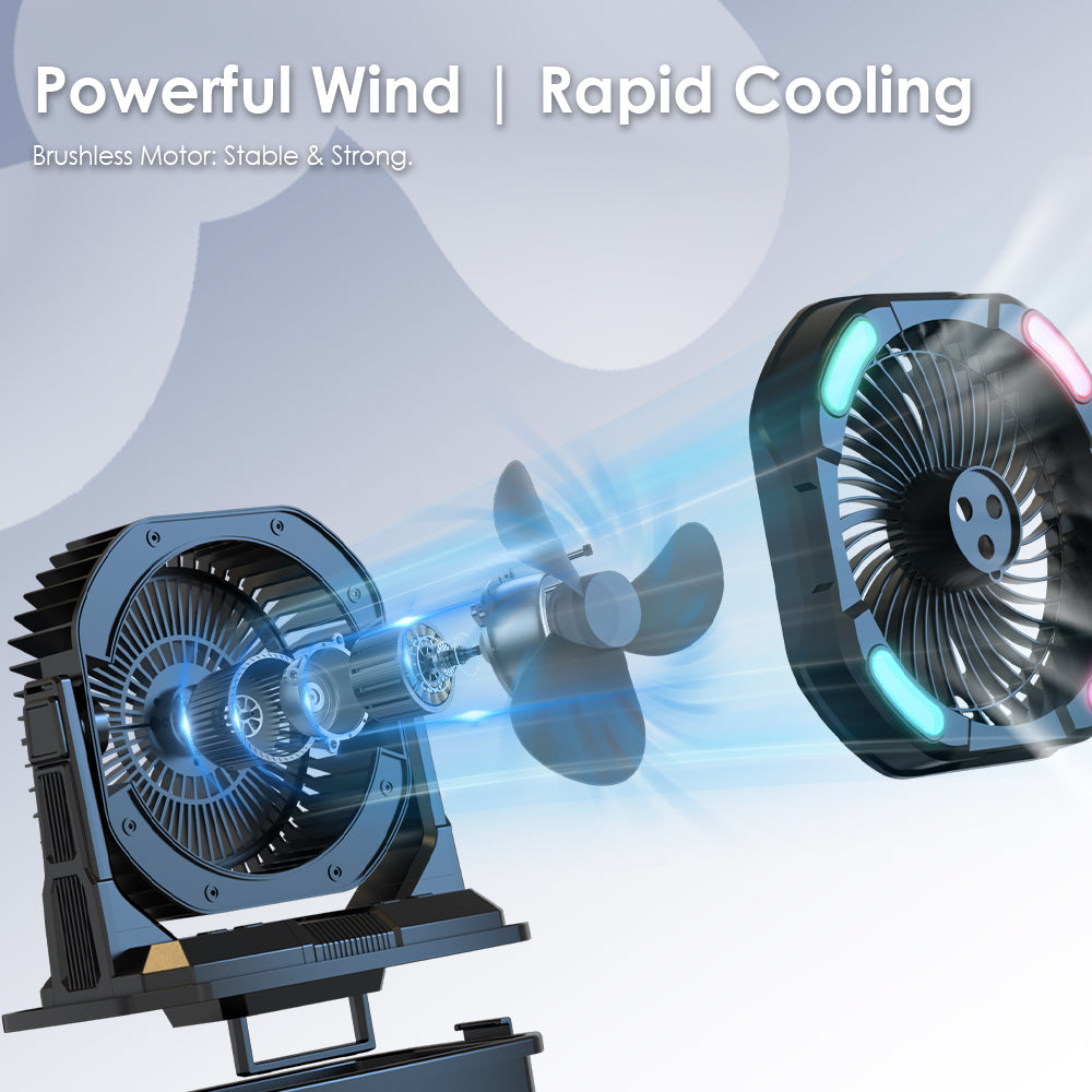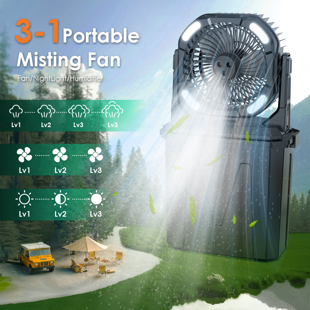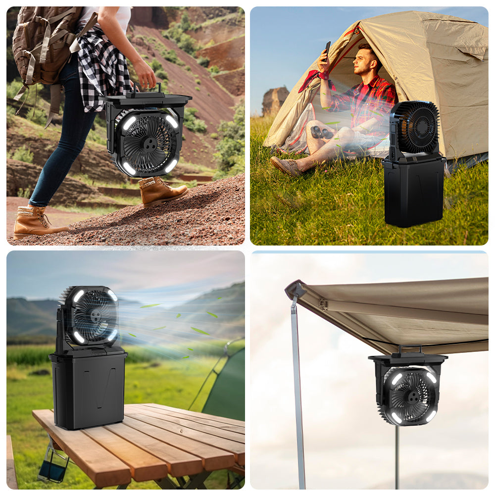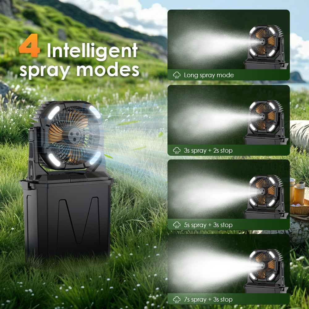 مروحة رش دلو CRONY F913 مروحة رذاذ قابلة لإعادة الشحن مع بطارية 20000mAh ضوء RGB مخرج USB مروحة محمولة للتخييم في الهواء الطلق السفر الاستخدام الطارئ