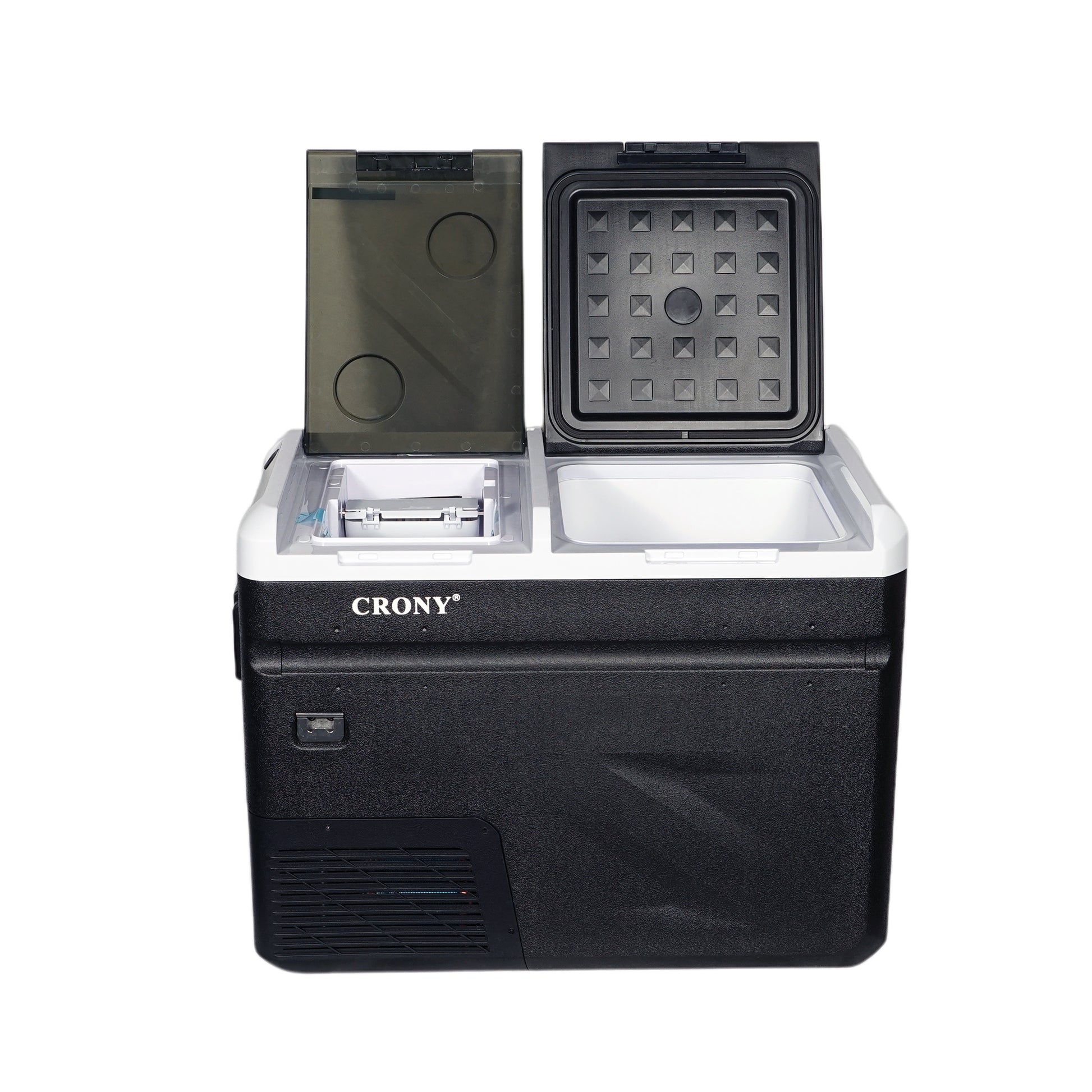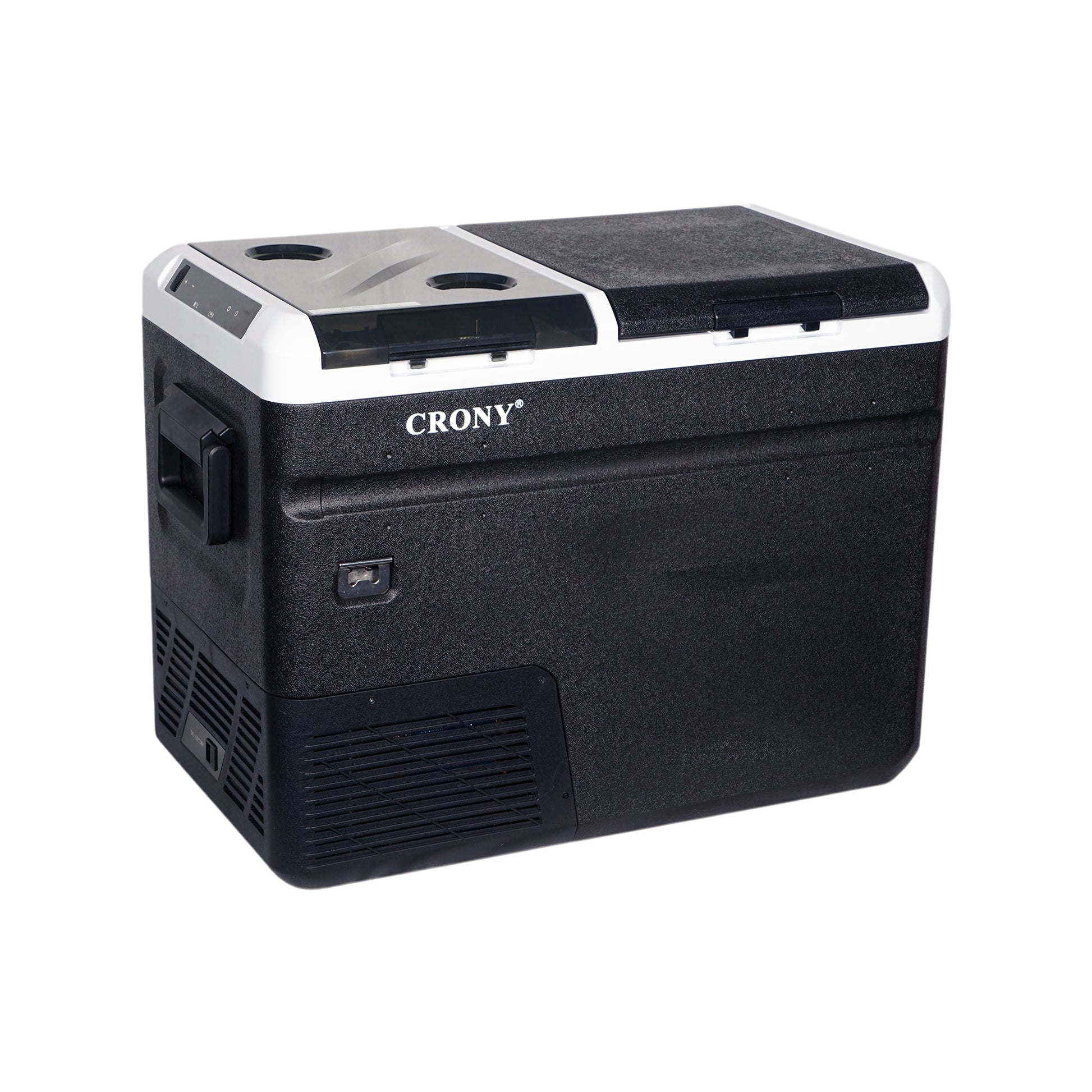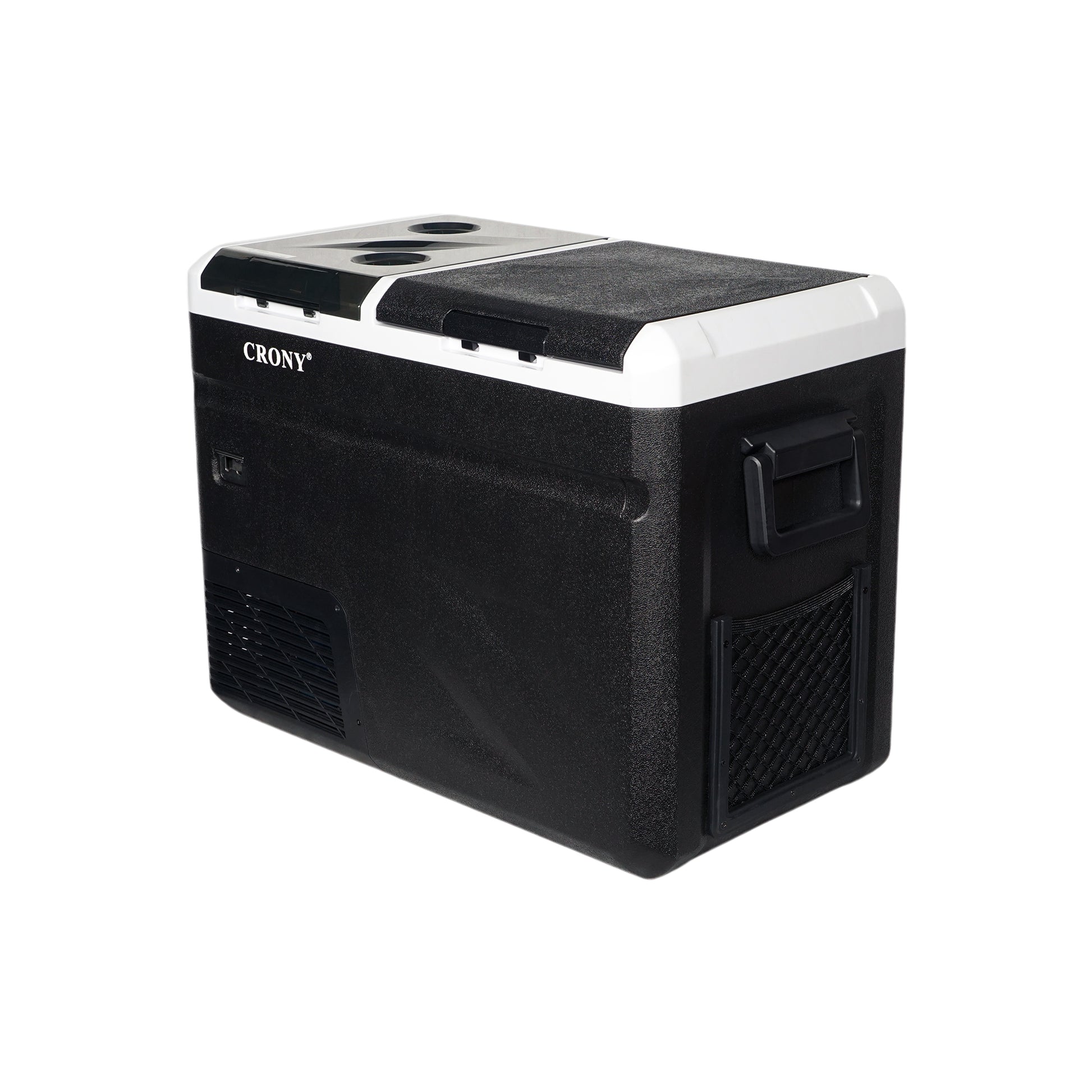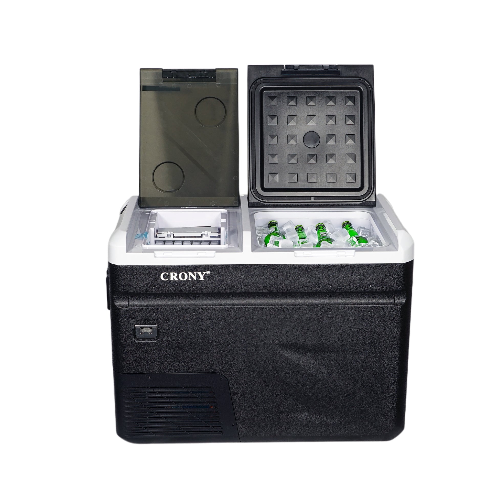 ثلاجة منزلية وسيارة CRONY IC36 بسعة 36 لتر مع ماكينة ثلج، فتاحة زجاجات، حامل أكواب، وحماية بطارية السيارة