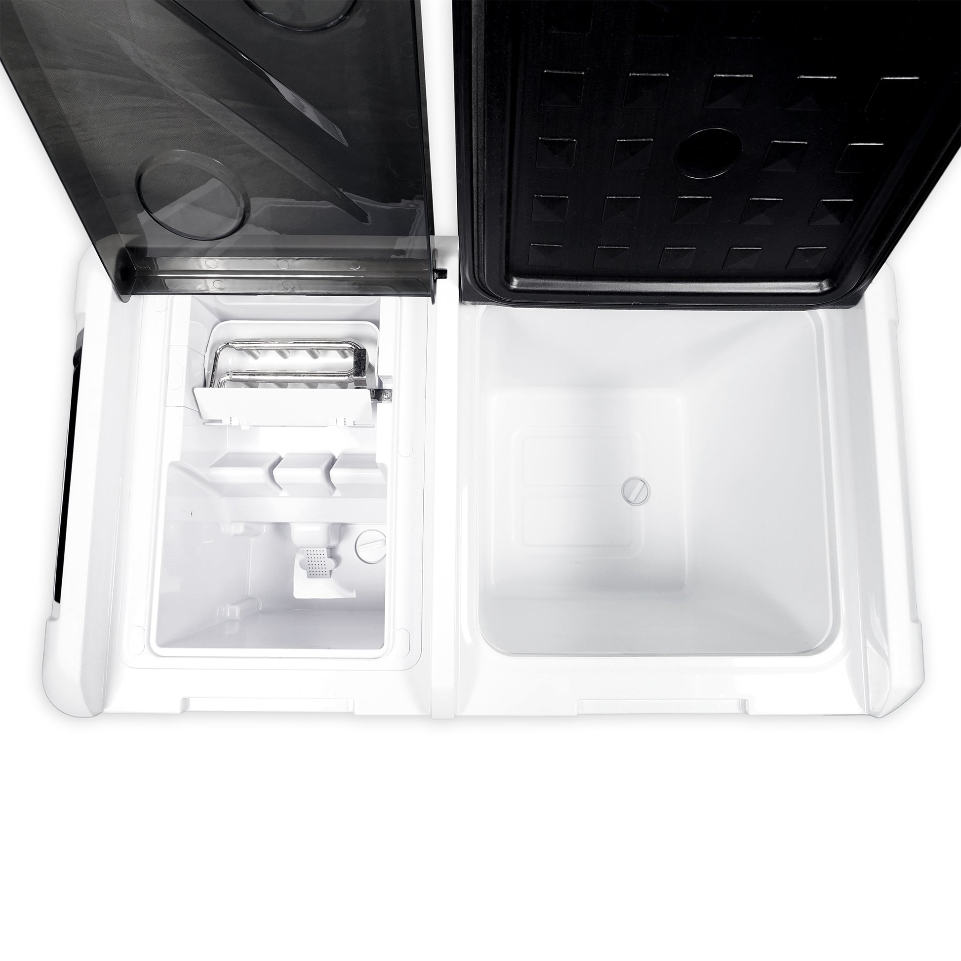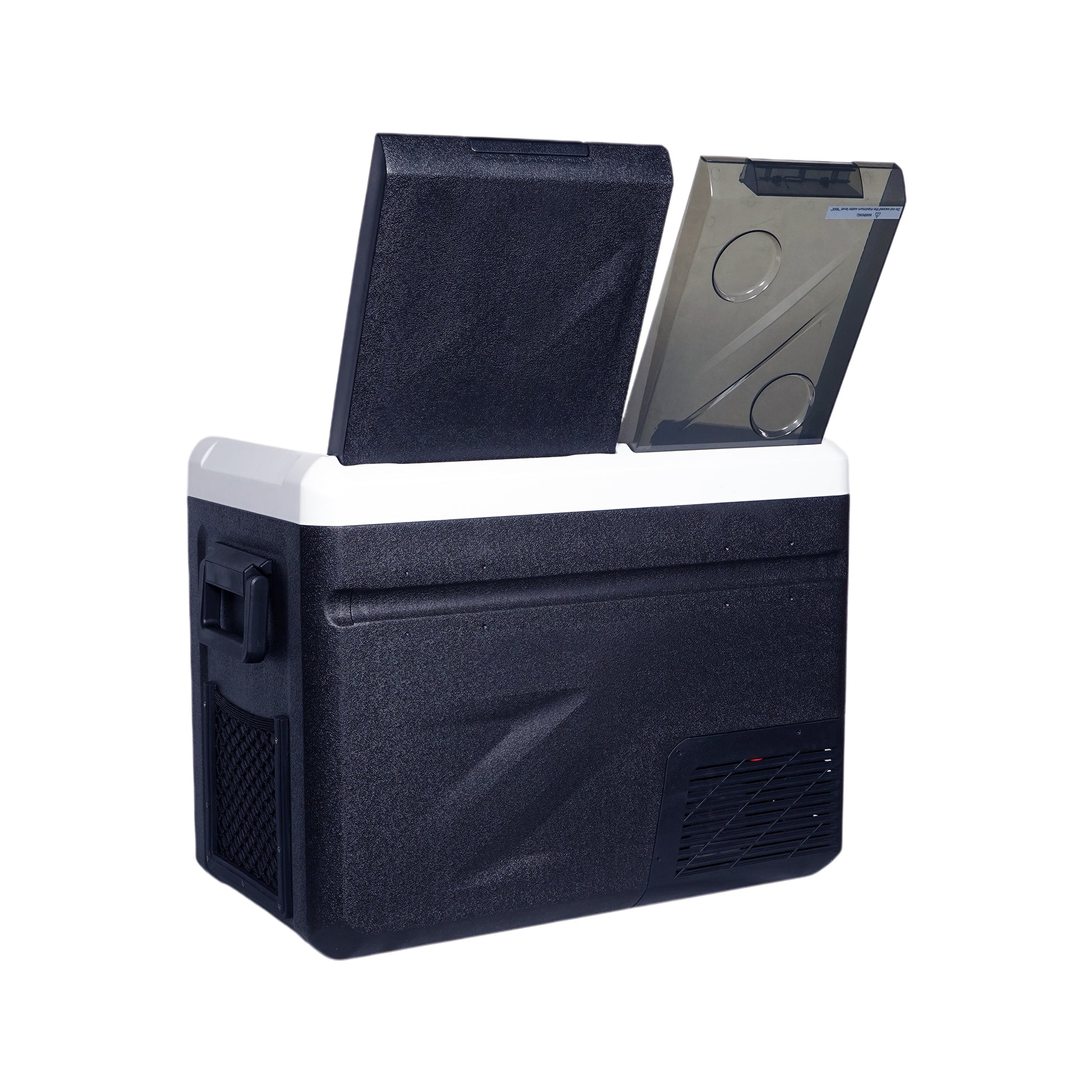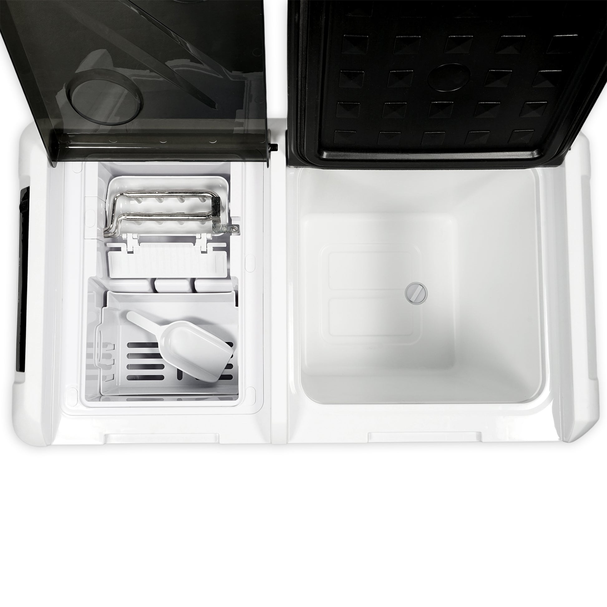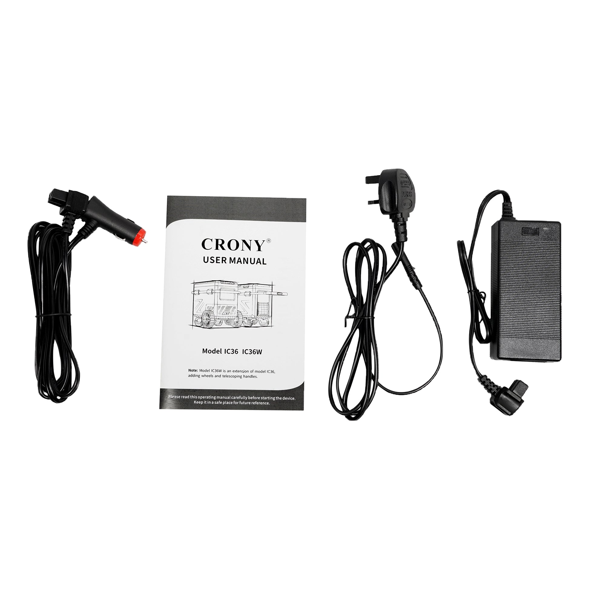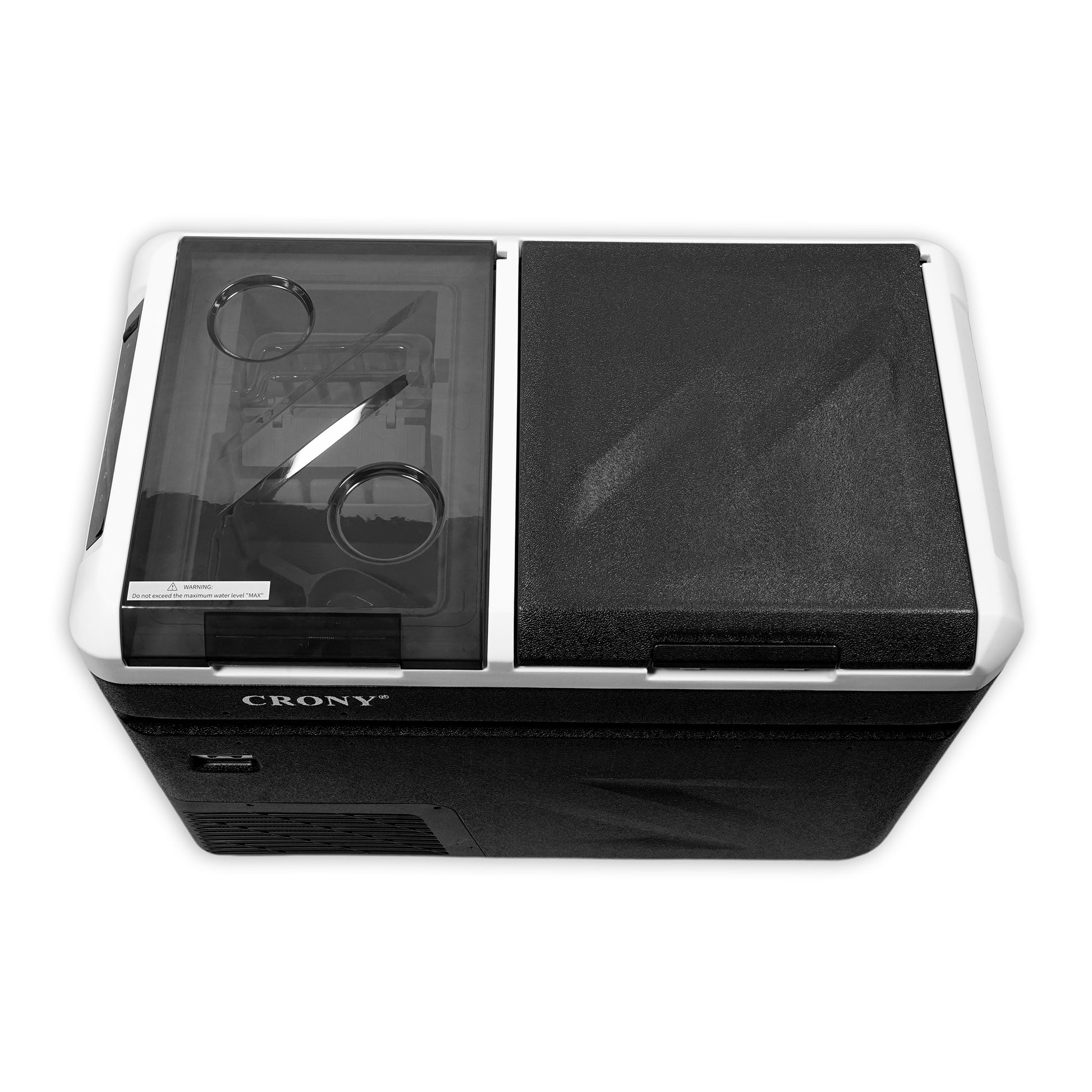 ثلاجة منزلية وسيارة CRONY IC36 بسعة 36 لتر مع ماكينة ثلج، فتاحة زجاجات، حامل أكواب، وحماية بطارية السيارة
