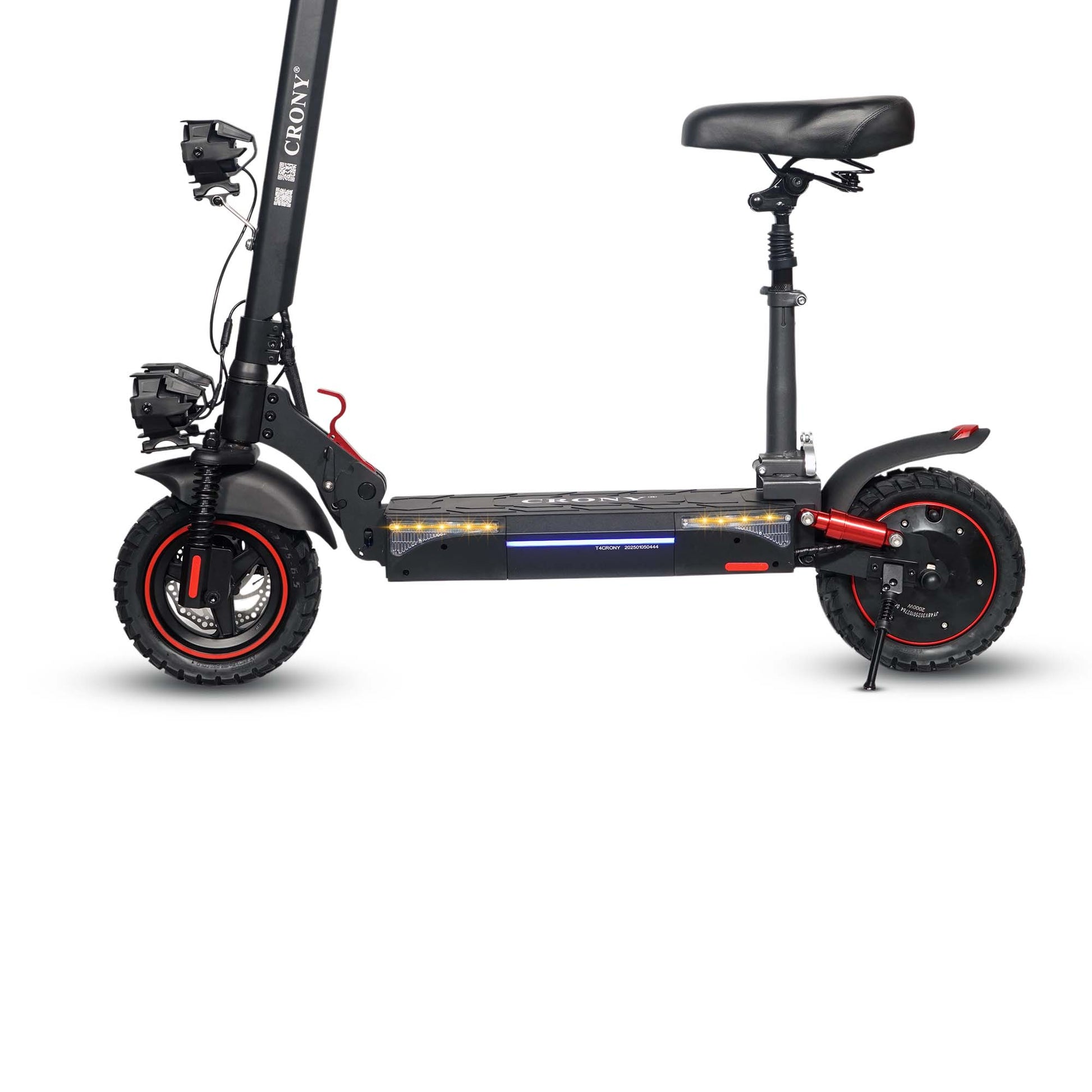 سكوتر كهربائي CRONY T4 بشاشة كبيرة وسرعة عالية مع مصابيح LED ثلاثية التصميم قابل للطي