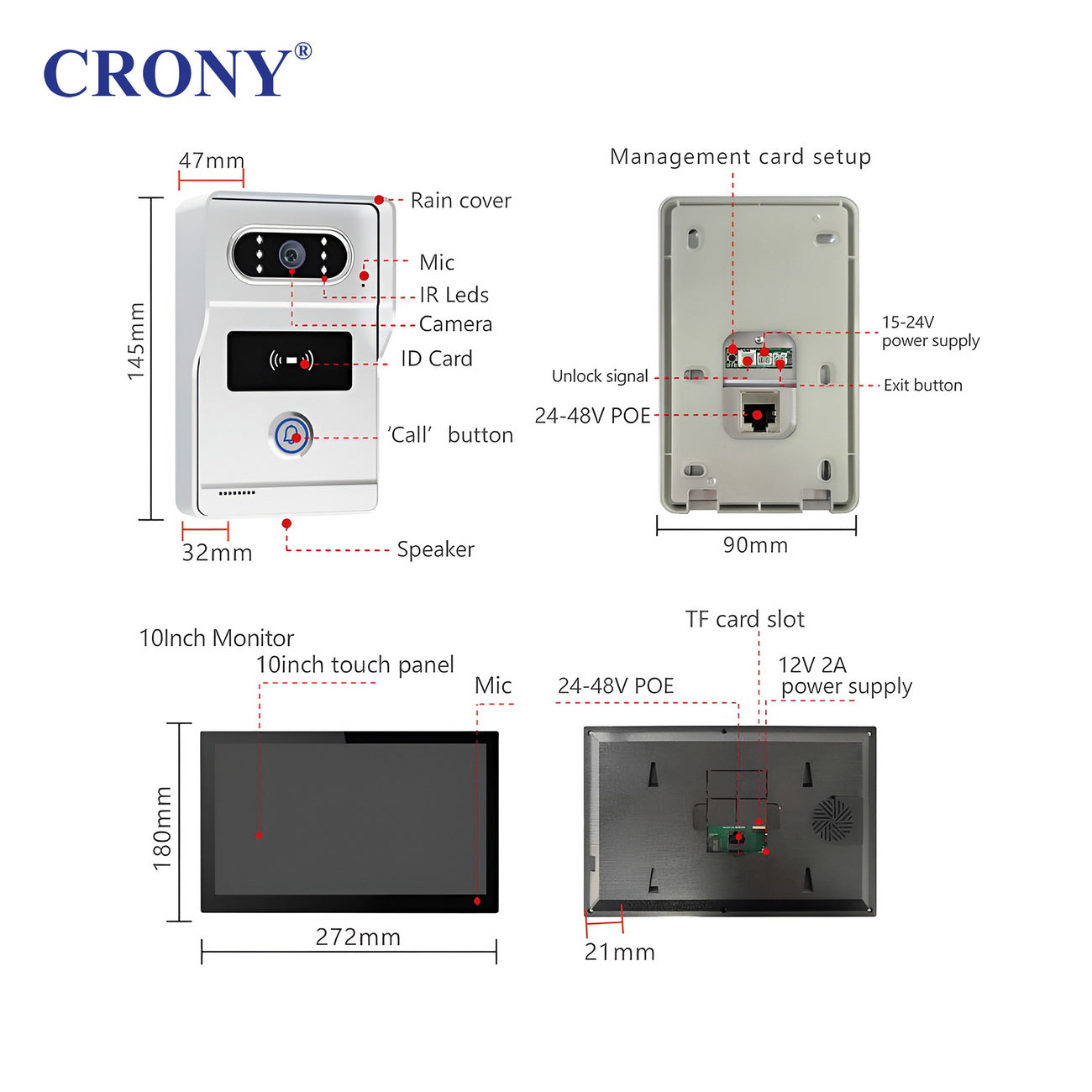 نظام جرس الباب بالفيديو CRONY TUYATY102THTD2 بشاشة لمس 10 بوصة AHD سلكي مع كاميرا 1080P تحكم ذكي عبر التطبيق كشف الحركة فتح عن بُعد رؤية ليلية دعم بطاقة TF