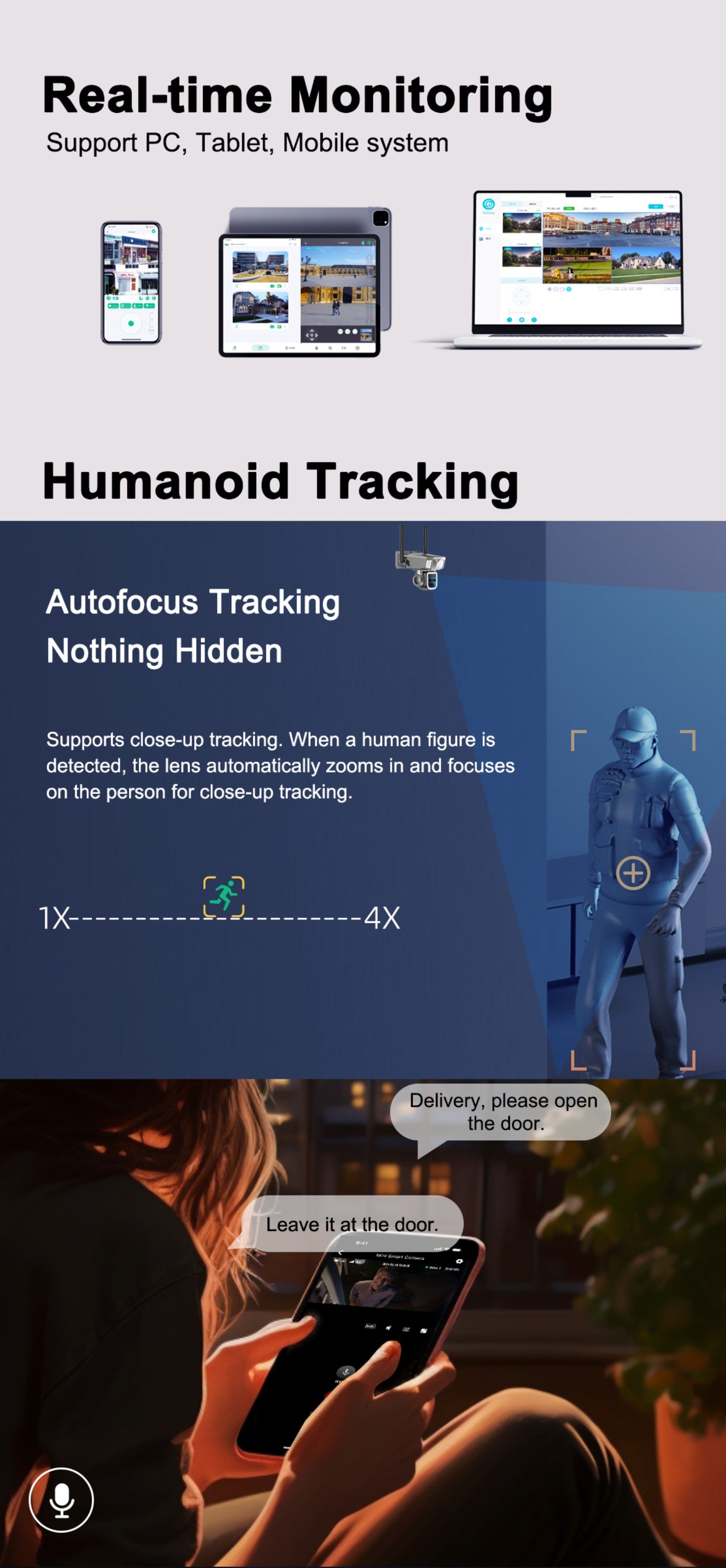 كاميرا CRONY Y7B 4G-4K-8MP ذات العدسة المزدوجة بالطاقة الشمسية مع تكبير مستمر