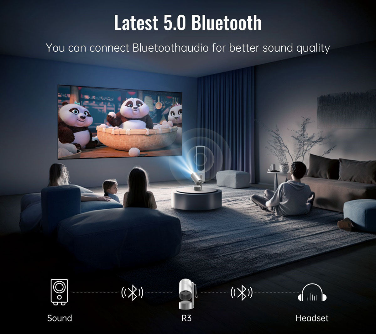 CRONY R3P Portable Mini Projector 1080P LED Smart Projector Supports 4K Decode Android with Built In Speakers